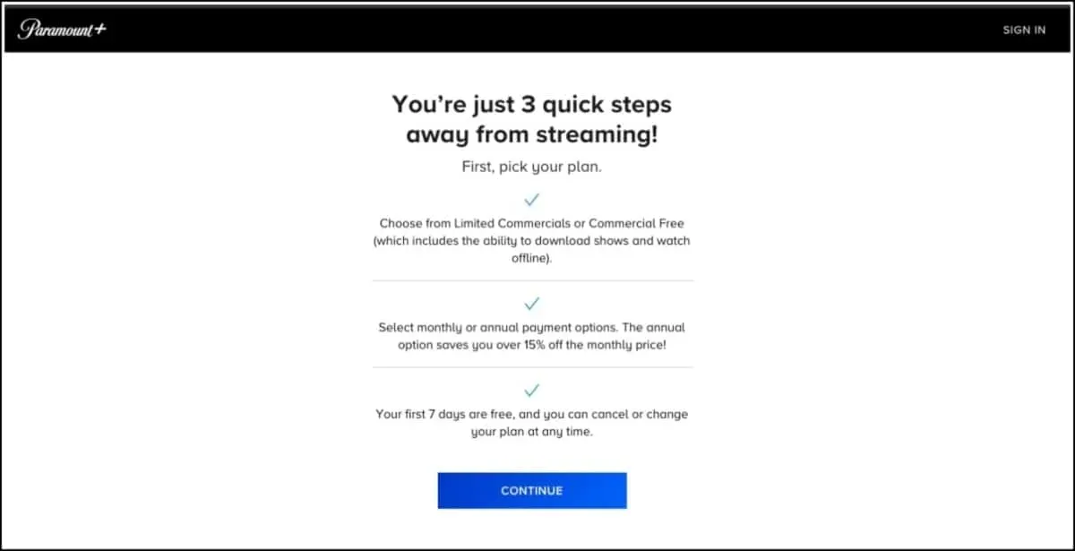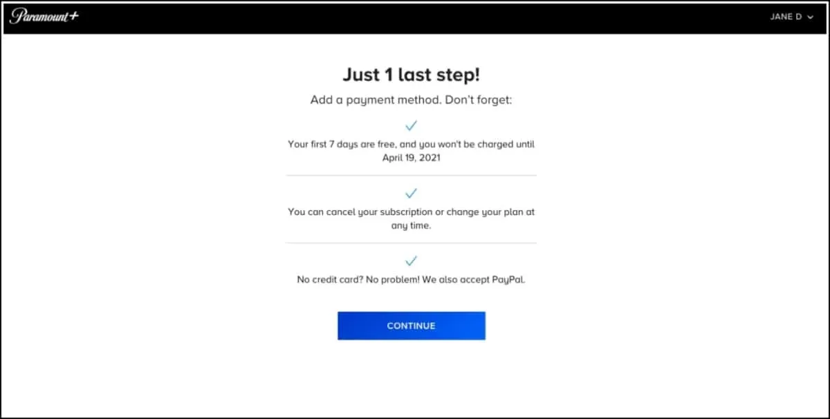 Listed below are the steps to join your 7-day free trial to Paramount+: